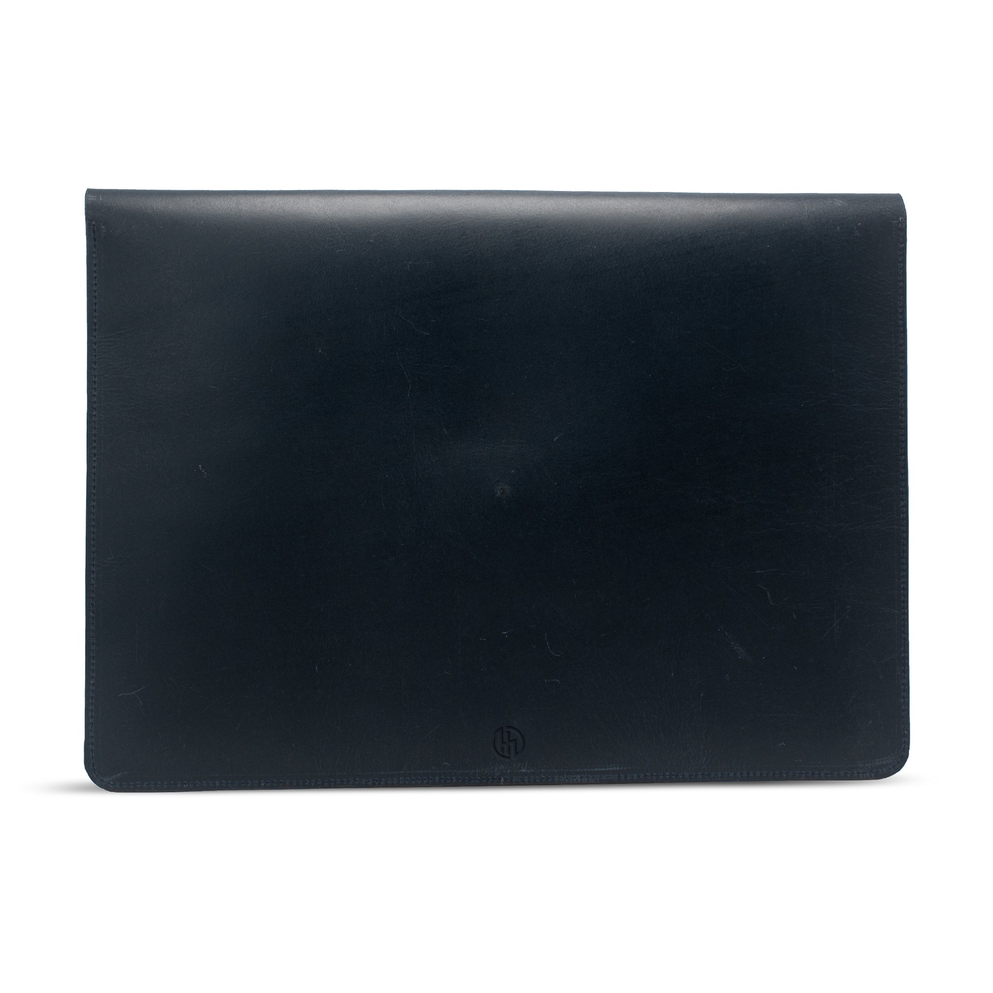 Introducing the ShadowMarque Sleeve, a refined laptop sleeve crafted for discerning professionals who appreciate timeless design and enduring quality. Made from deep navy full-grain buffalo leather, this sleeve pairs striking aesthetics with unmatched durability. Its inner lining of premium navy goat suede delivers a smooth, cushioned surface that protects your device while exuding luxury.